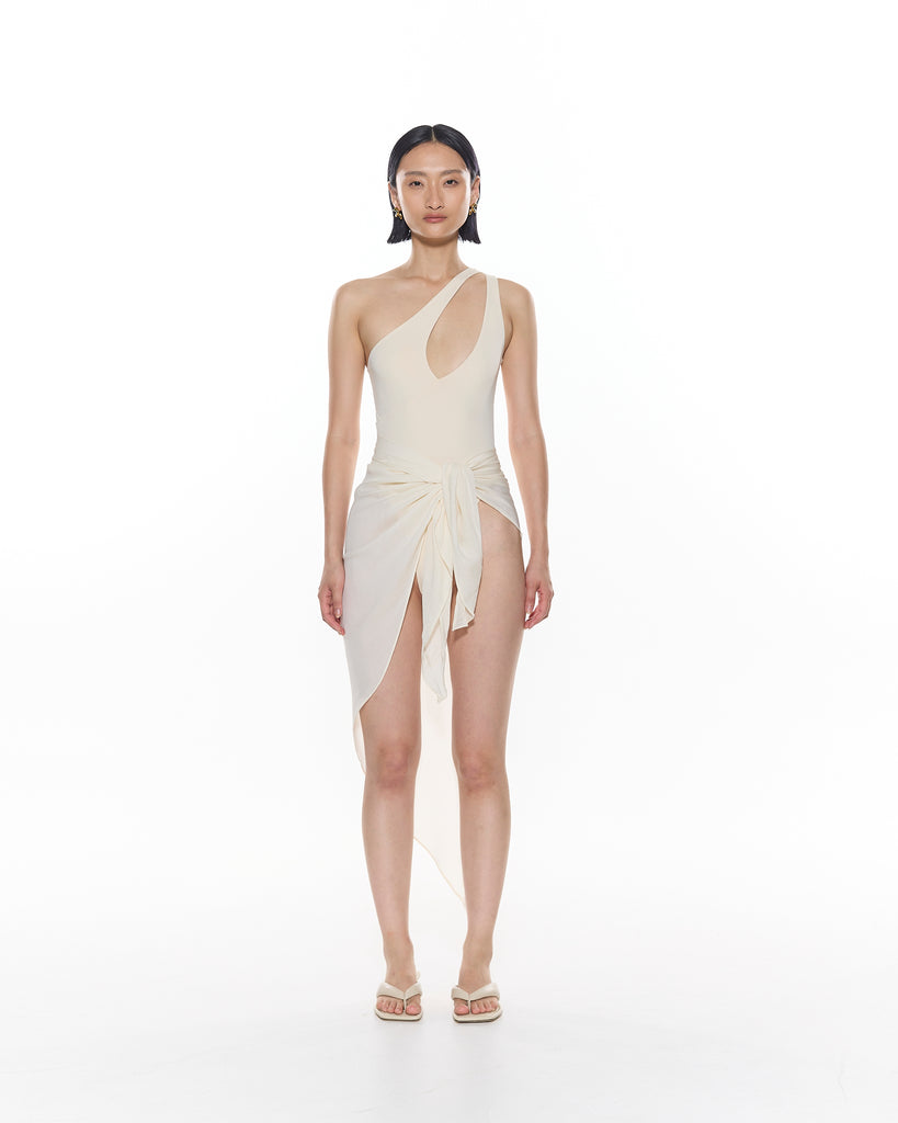 The Johni Sarong is a versatile multi-wear cover up designed to be worn on the hips, draped around the bust or as a headscarf.