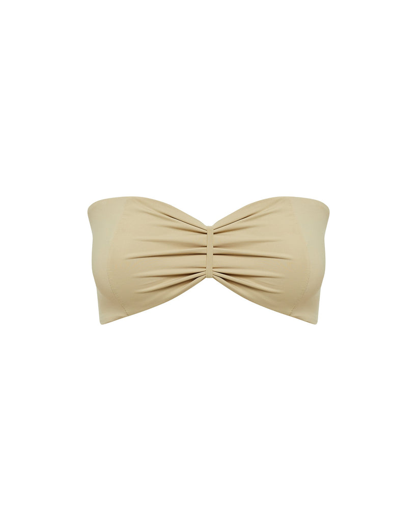 The Kaia Bandeau Bikini Top features a strapless neckline and gathered bust detail for a contoured look.