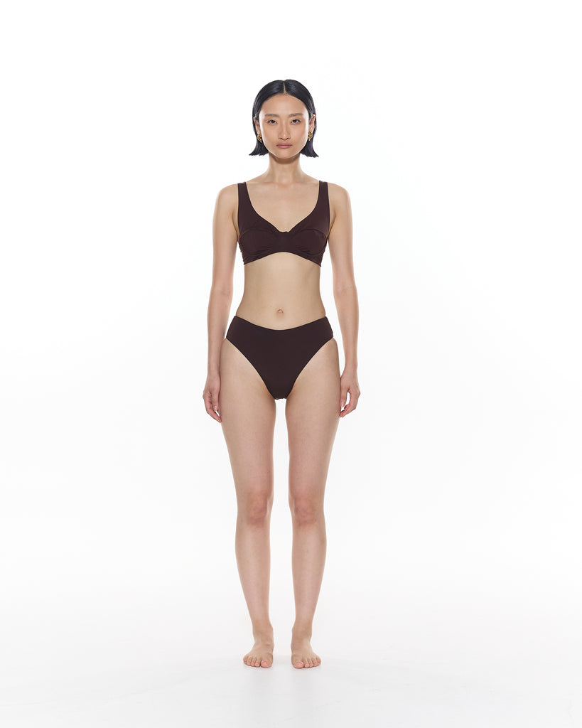 The Mia Mid-Rise Bikini Bottom features a flattering design with thick sides and a medium coverage bottom.