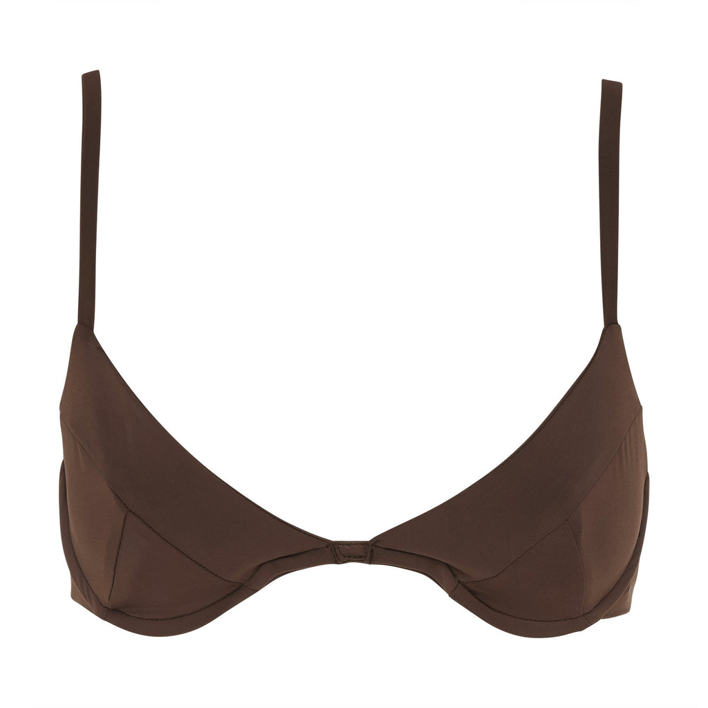 The Jardin is a supportive, bralette bikini top featuring thin adjustable shoulder straps, lined cups and an underwire bust.