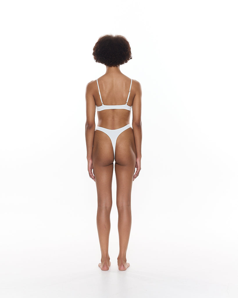 The Jardin is a supportive, bralette bikini top featuring thin adjustable shoulder straps, lined cups and an underwire bust.
