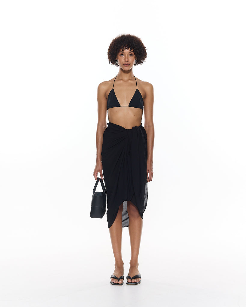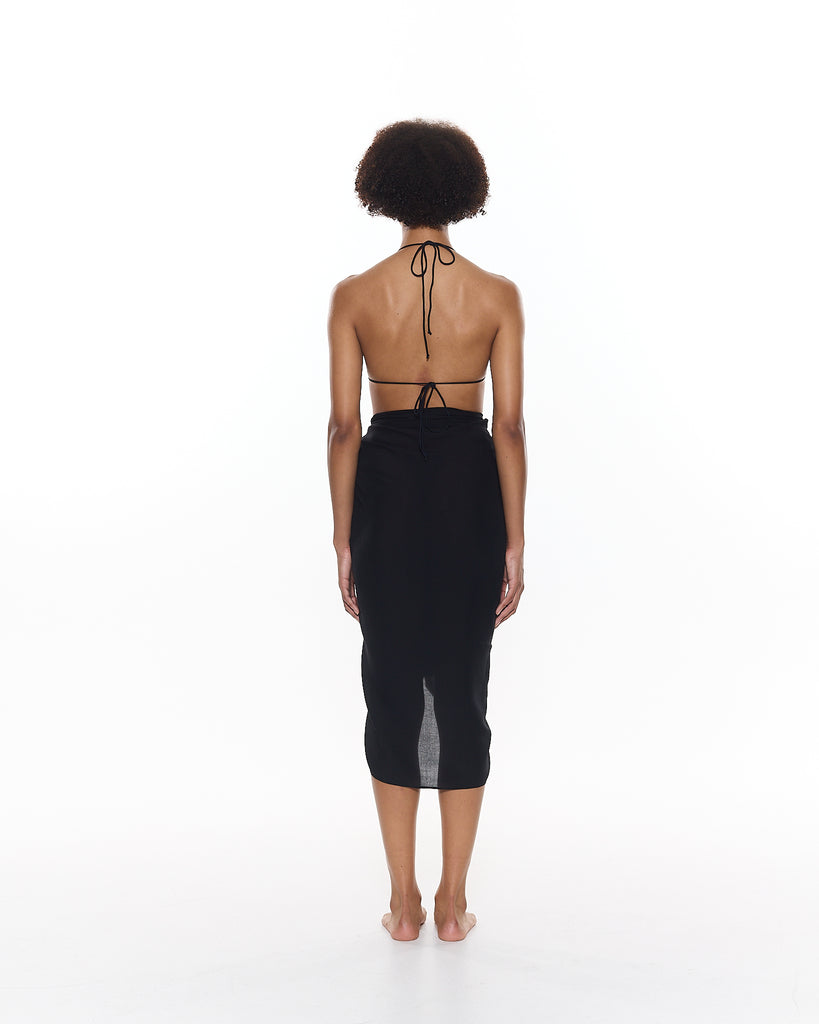 The Dexter Sarong is a versatile multi-use garment that can be tied to the side like a classic sarong or above the bust to cover mid-body section.