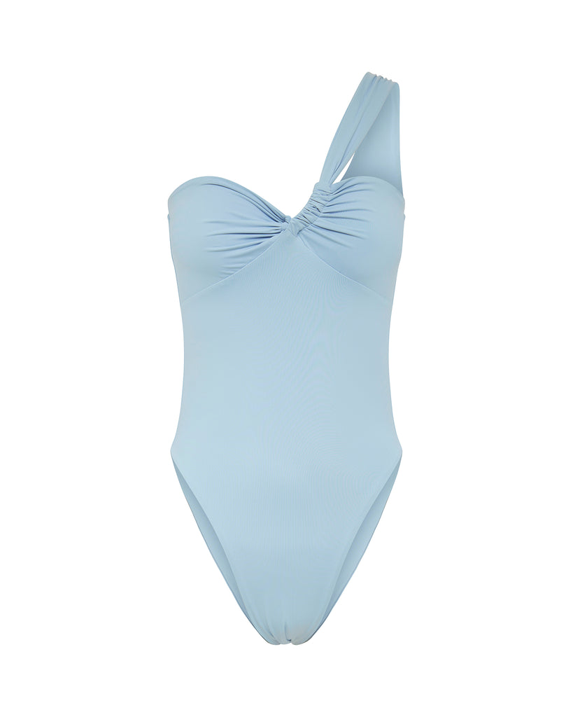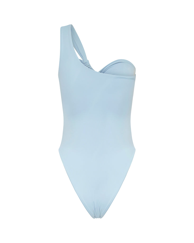 The Ace Asymmetric One Piece features a ruched one shoulder detail, high leg cut and medium coverage bottom.