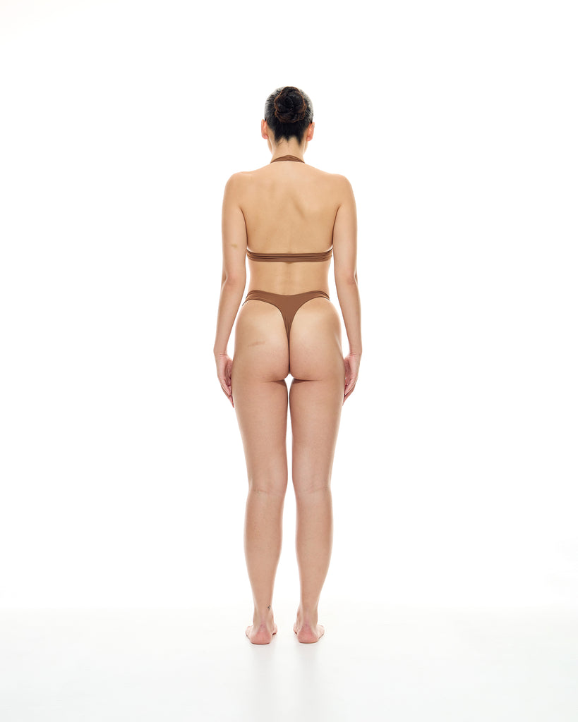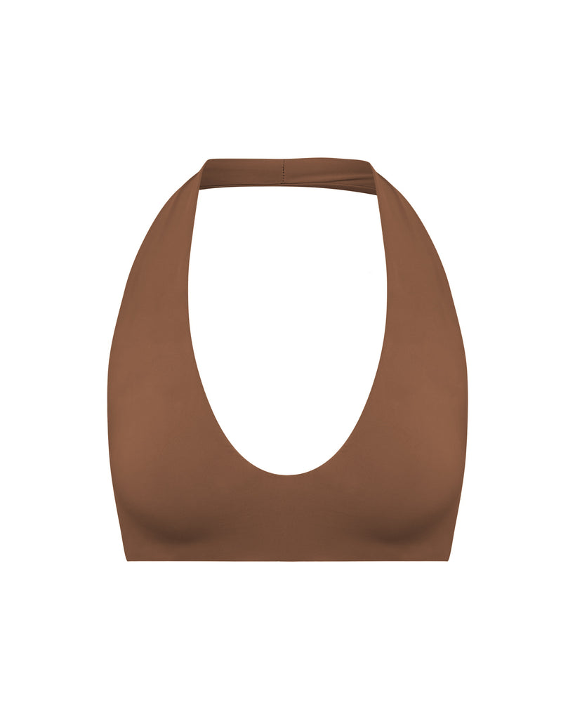 The Asher Halter Bikini Top features a deep v-neckline and minimal coverage back.