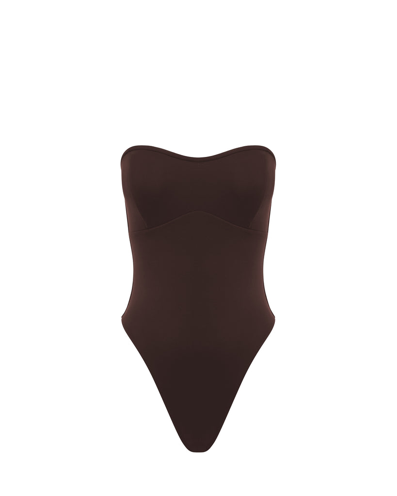 The Otis is a sculpting strapless style featuring a structured bust, medium coverage bottom and signature high leg cut.