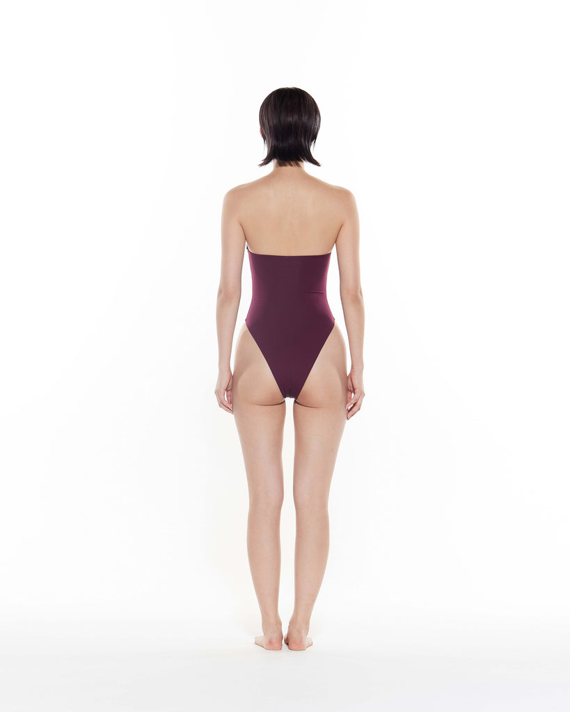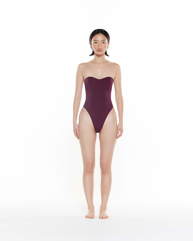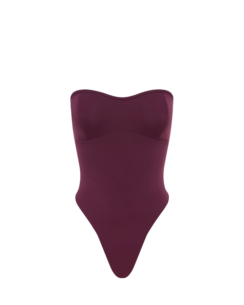 The Otis is a sculpting strapless style featuring a structured bust, medium coverage bottom and signature high leg cut.