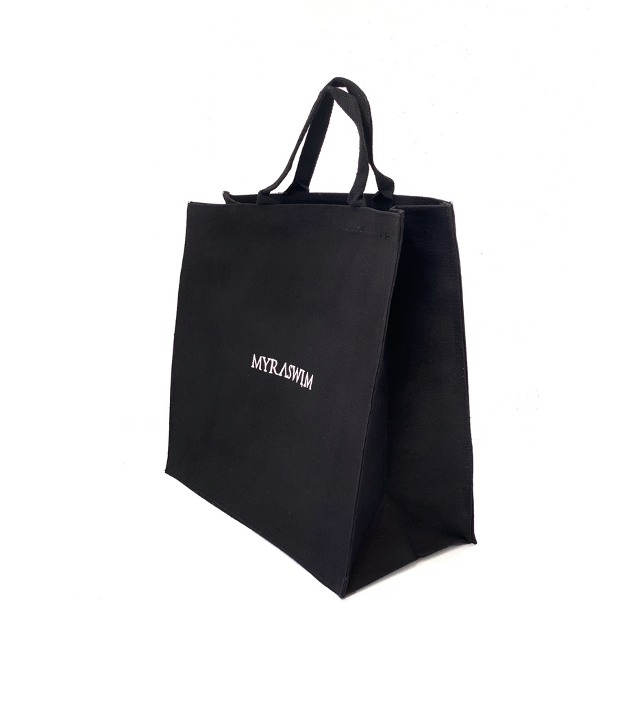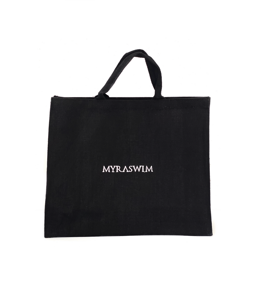 Perfect to use as a beach bag, these totes feature matching handles and a white embroidered 'Myra Swim' logo.