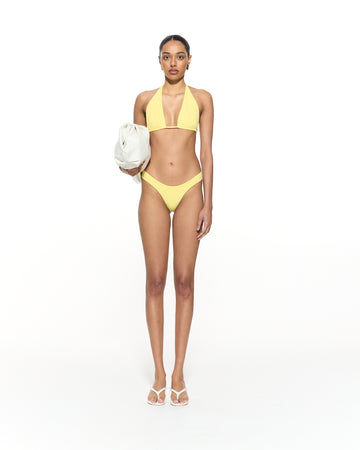 The Cartia Longline Triangle Bikini Top features adjustable drawstring ties and medium coverage triangle cups.