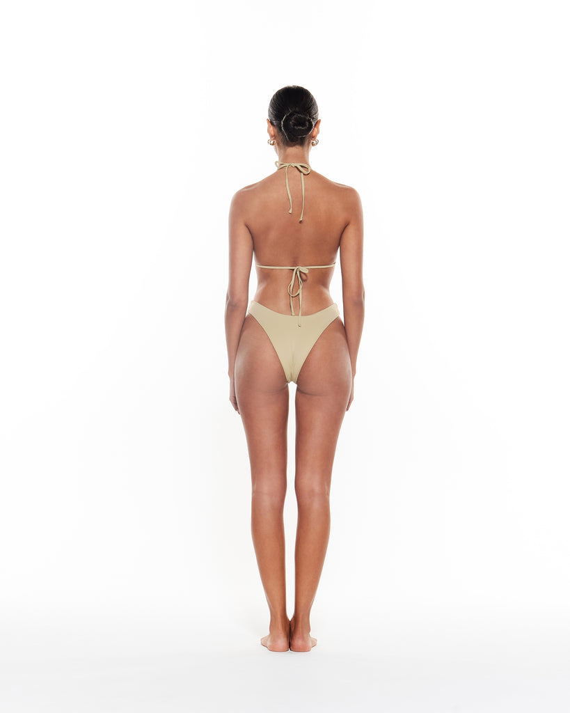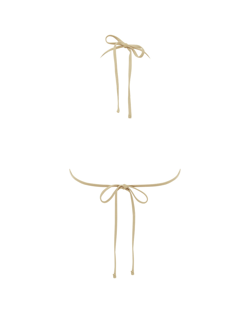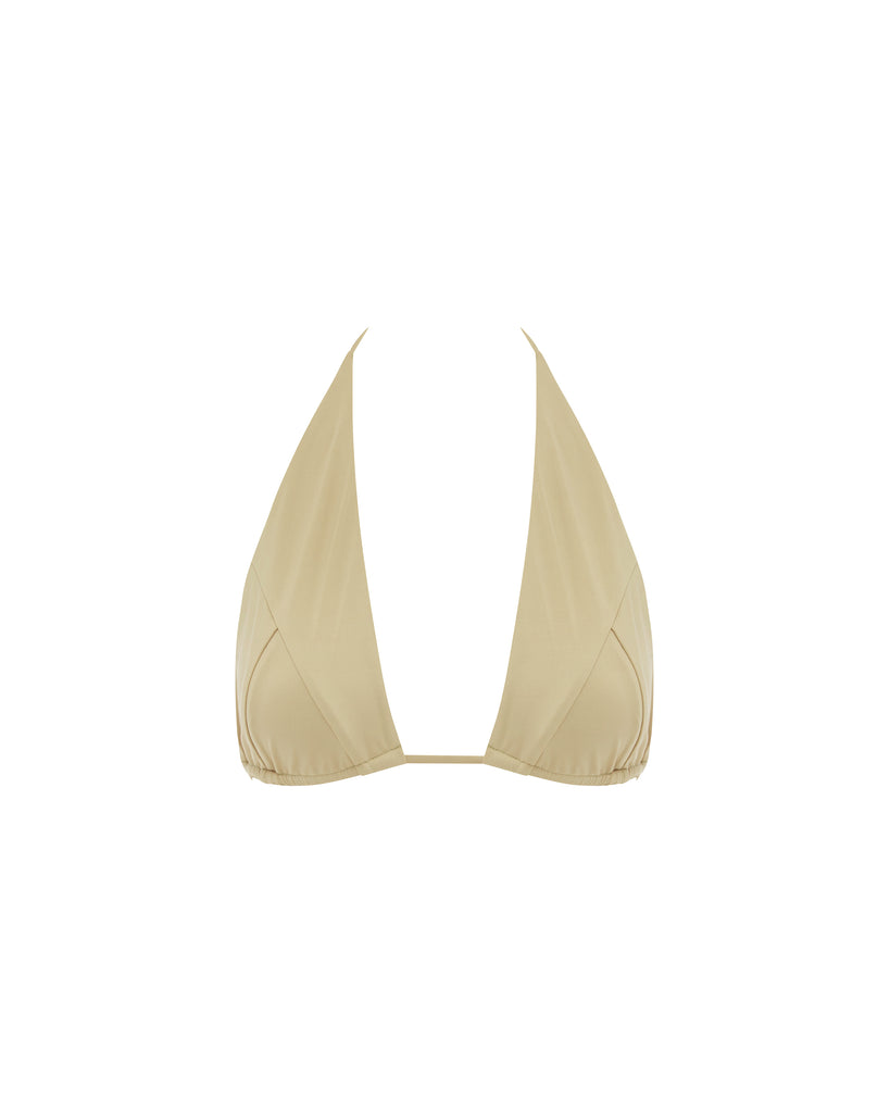 The Cartia Longline Triangle Bikini Top features adjustable drawstring ties and medium coverage triangle cups.