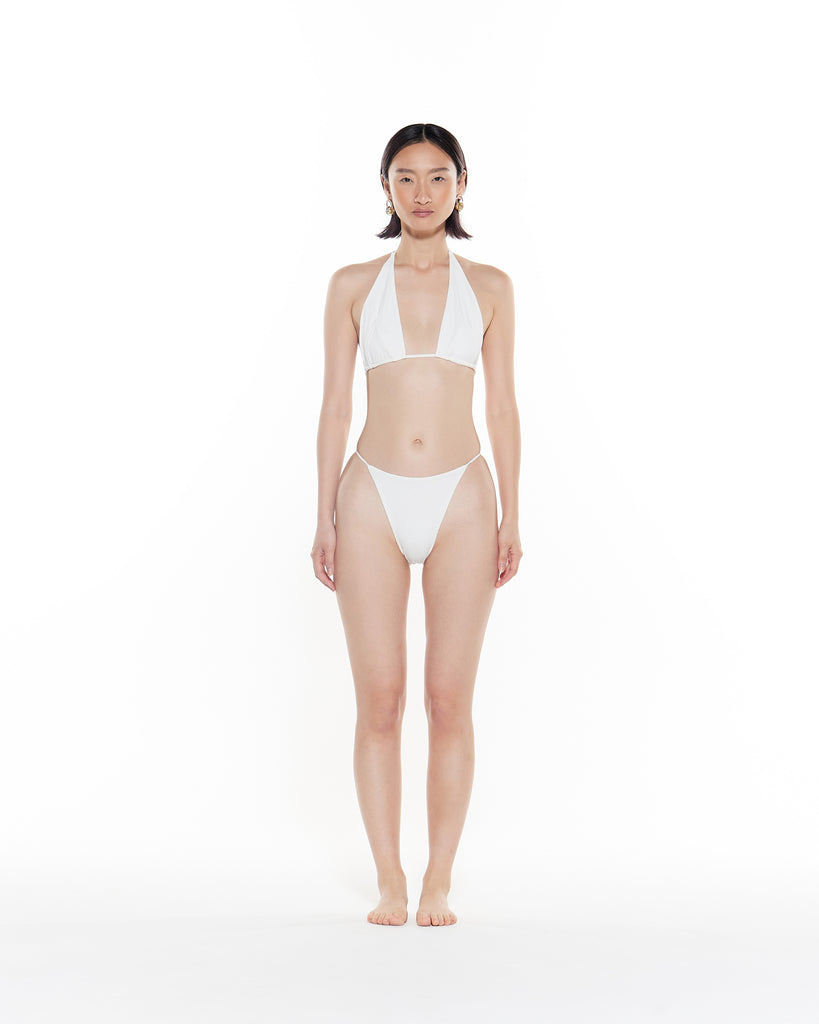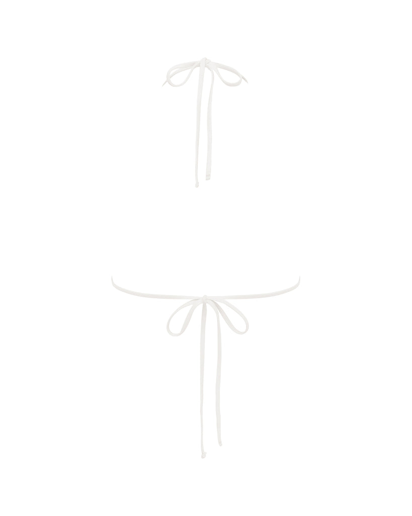 The Cartia Longline Triangle Bikini Top features adjustable drawstring ties and medium coverage triangle cups.