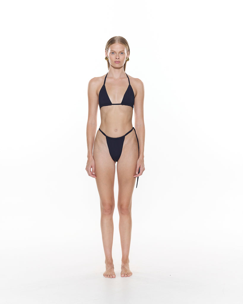 The Kyle Tie Side Bikini Bottom features a single tie side and thong bottom.