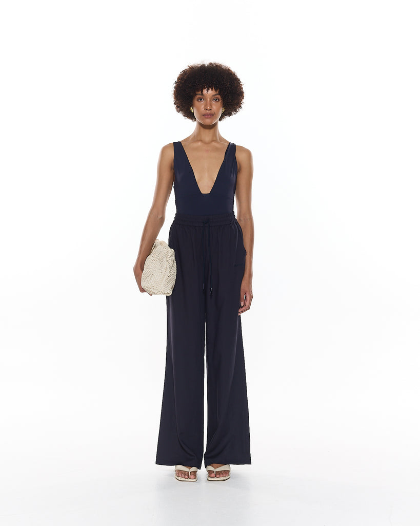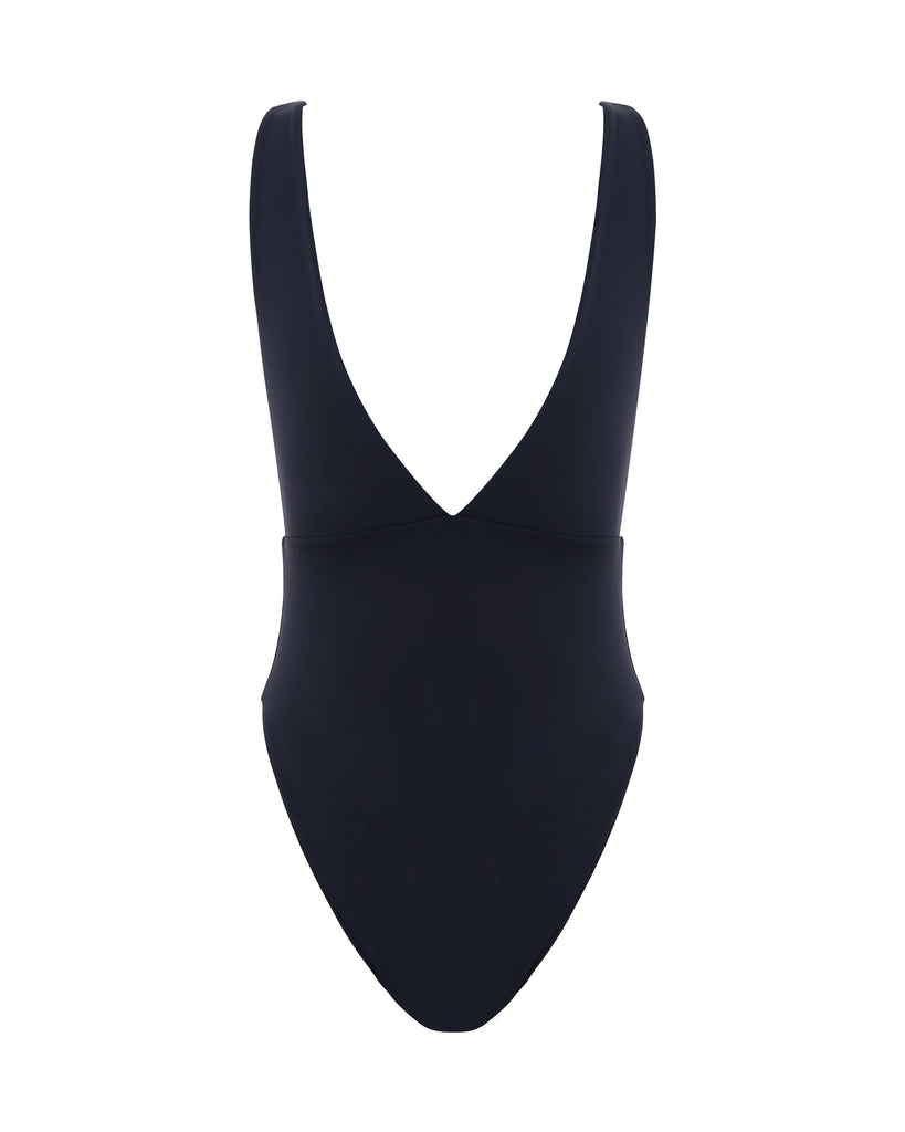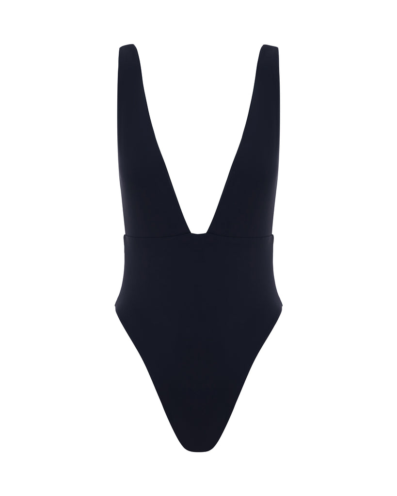 The Vaughn One Piece features a deep V-front and back with our signature leg cut and a medium to full coverage bottom.