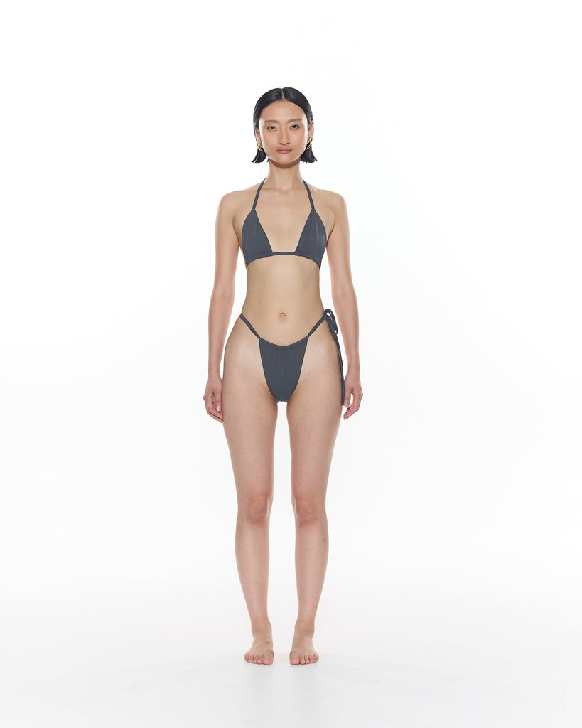 The Kyle Tie Side Bikini Bottom features a single tie side and thong bottom.