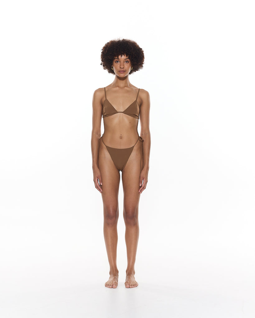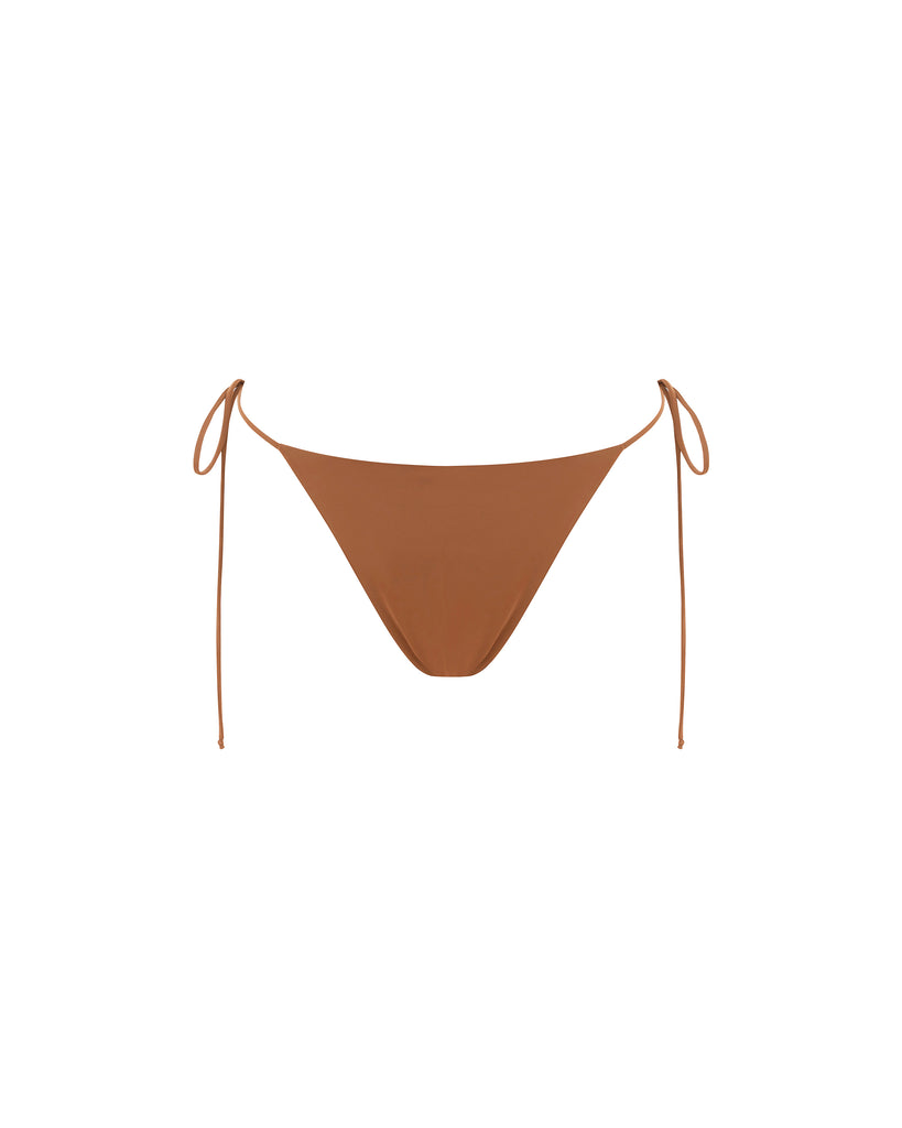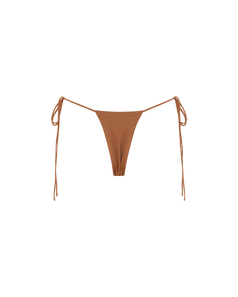 The Nyah Tie Side Bikini Bottom features adjustable string ties and a thong bottom.