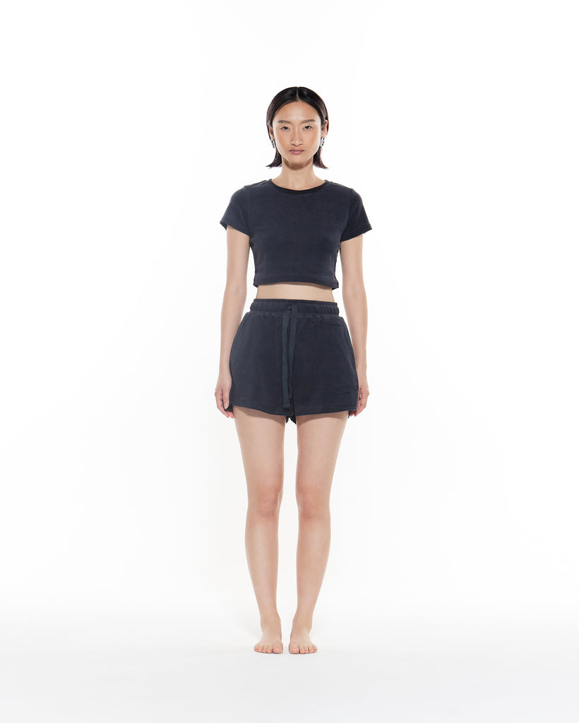 The Valeri Terry Towelling Short features a thick elastic waistband, drawstring detail and dual pockets.