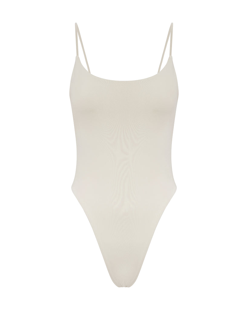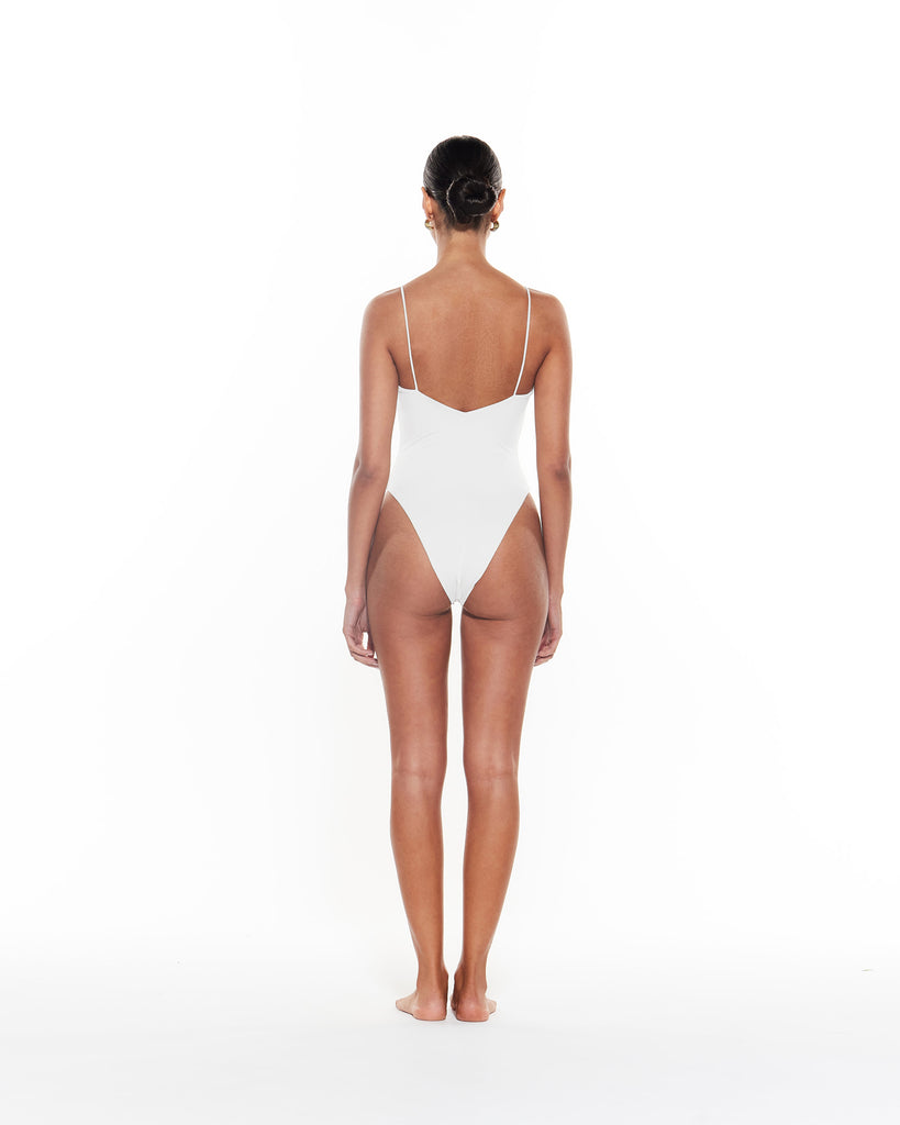 The Yves One Piece is a classic style featuring a slightly scooped neckline, thin shoulder straps and medium coverage bottom.