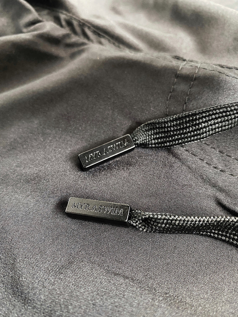 The Zephyr are a classic men's swim trunk featuring an adjustable drawstring waist, black hardware and dual front pockets.