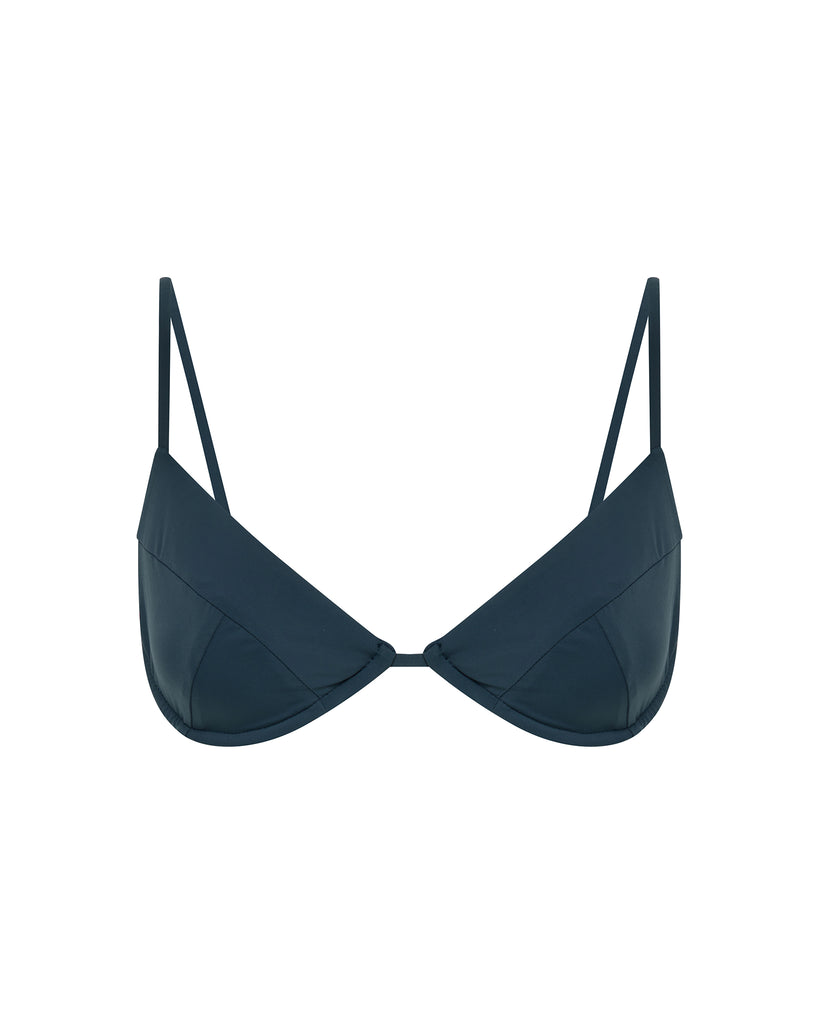 The Jardin is a supportive, bralette bikini top featuring thin adjustable shoulder straps, lined cups and an underwire bust.