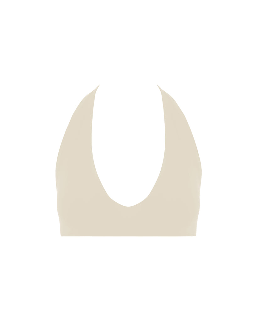 The Asher Halter Bikini Top features a deep v-neckline and minimal coverage back.