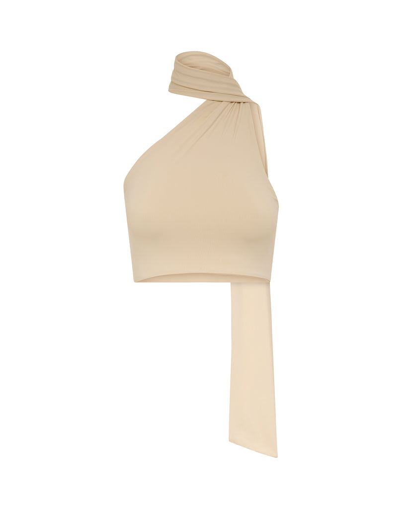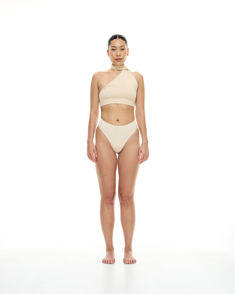 The Jai Asymmetric Top features an adjustable wrap-around neck detail and medium coverage front.