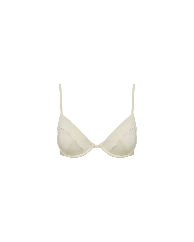 The Jardin is a supportive, bralette bikini top featuring thin adjustable shoulder straps, lined cups and an underwire bust.