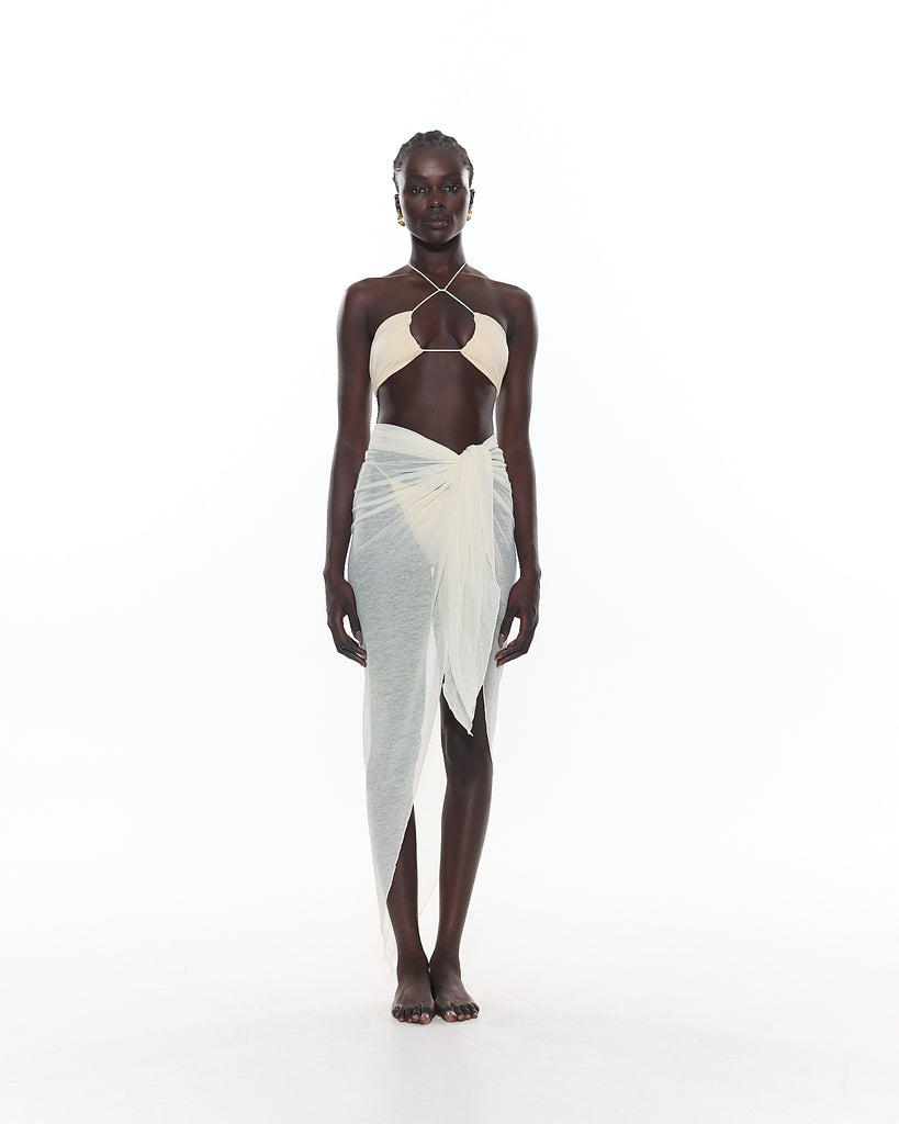 The Ivy Sarong is a multi-wear sheer sarong that can be tied on the hips, worn as a head scarf or styled as a strapless cover up.