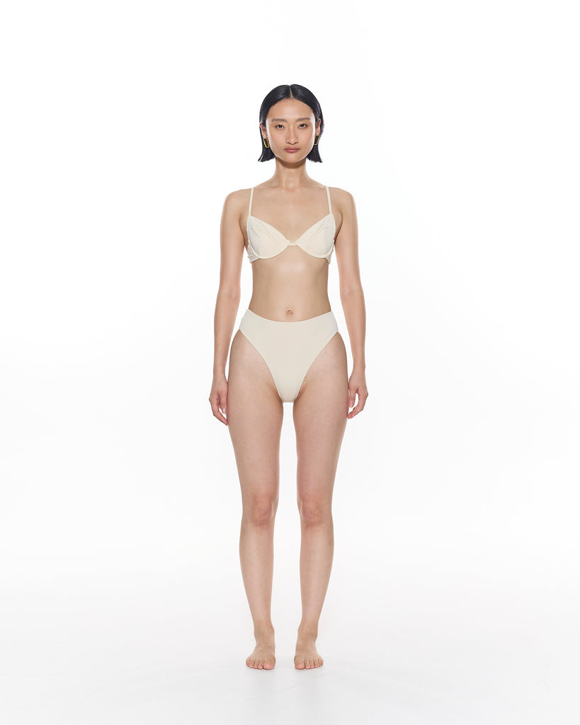 The Lauren High Waist Bikini Bottom features a high leg cut, subtle v-back and thong bottom.