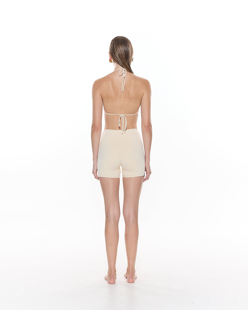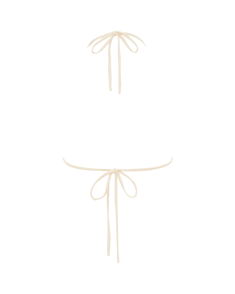 The Rorrey Halter Bikini Top features a bralette design with adjustable neck and back ties.