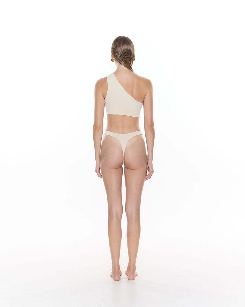 The Ryann Asymmetric Bikini Top features a one-shoulder detail and front cut-out.