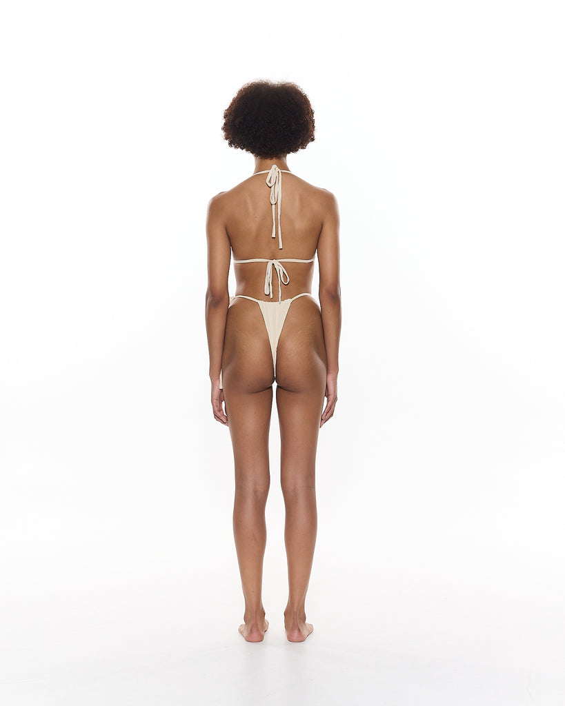 The Vera Triangle Bikini Top features adjustable drawstring ties and lined triangle cups.
