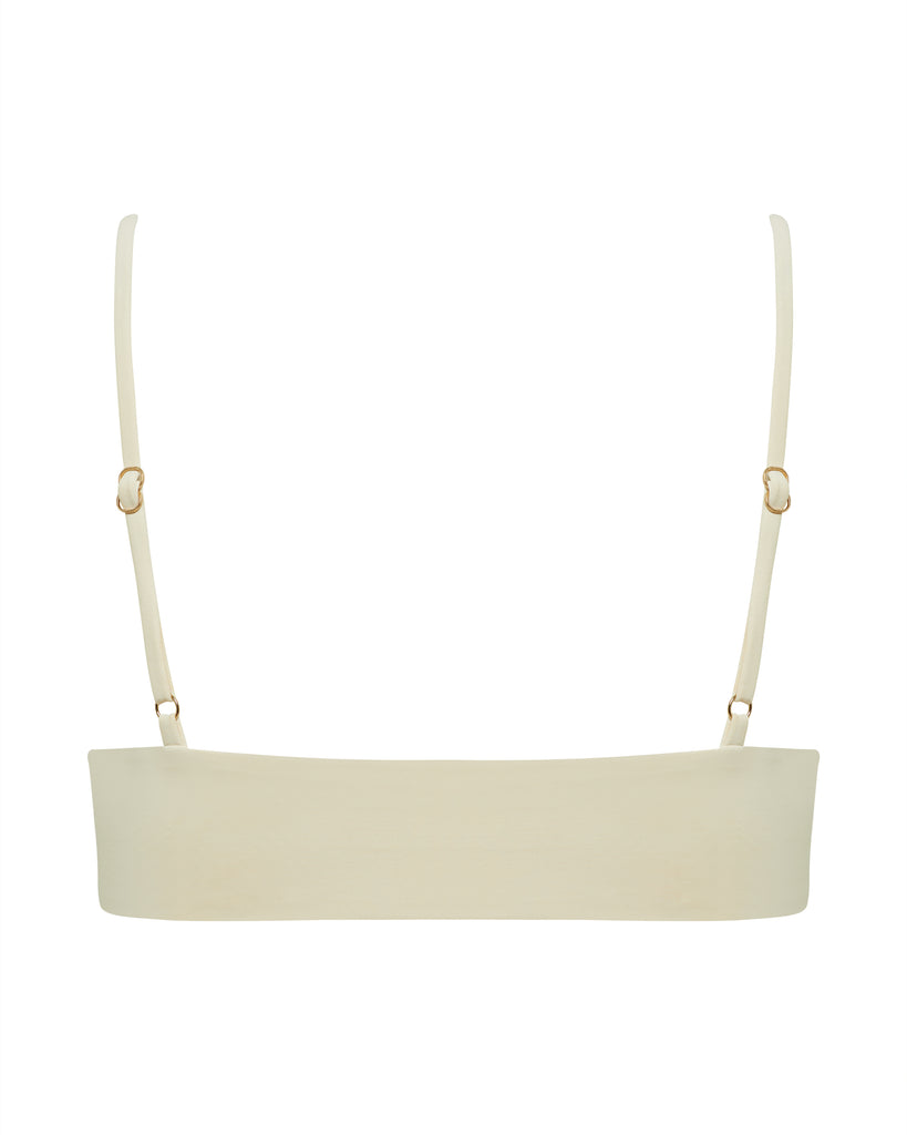 The Willow Bralette Bikini Top features a v-neckline and thin adjustable shoulder straps.