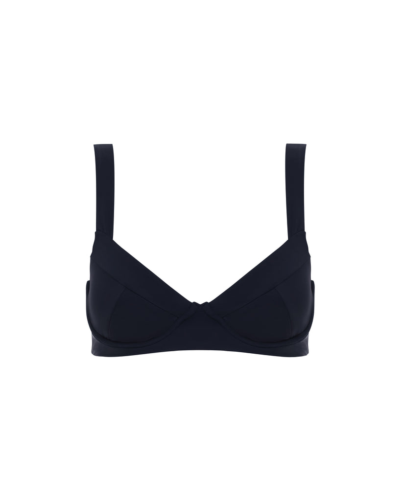 The Chase is a medium coverage underwire bikini top featuring thick shoulder straps and lined cups.