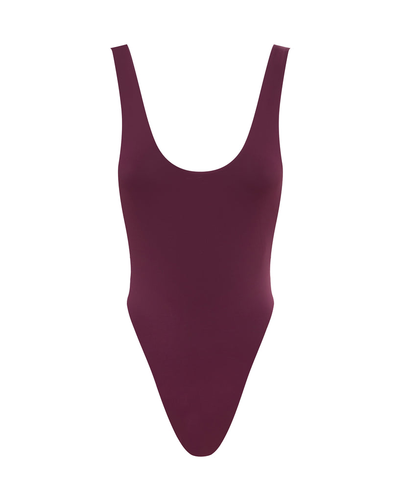 The Nixon Scoop Neck One Piece features a high leg cut, low back and thong coverage bottom.