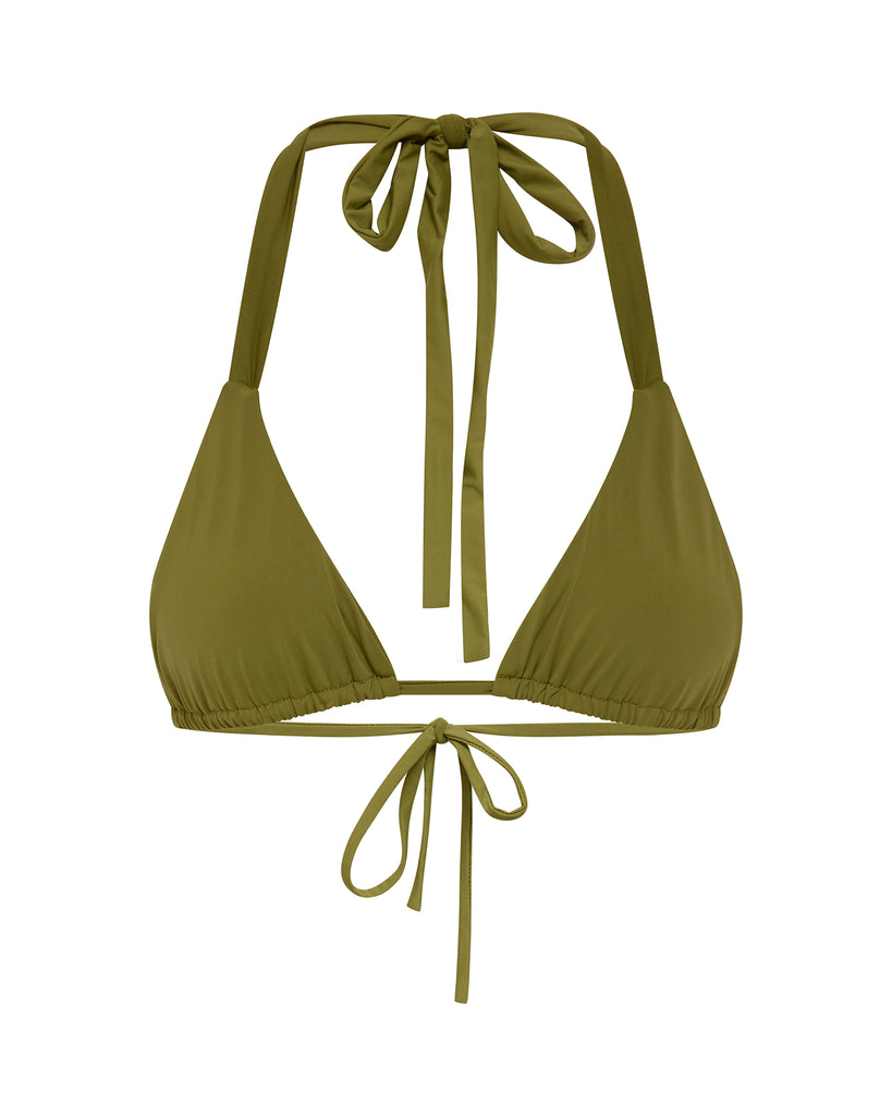 The Dion Triangle Bikini Top features thin-medium adjustable ties and lined triangle cups.