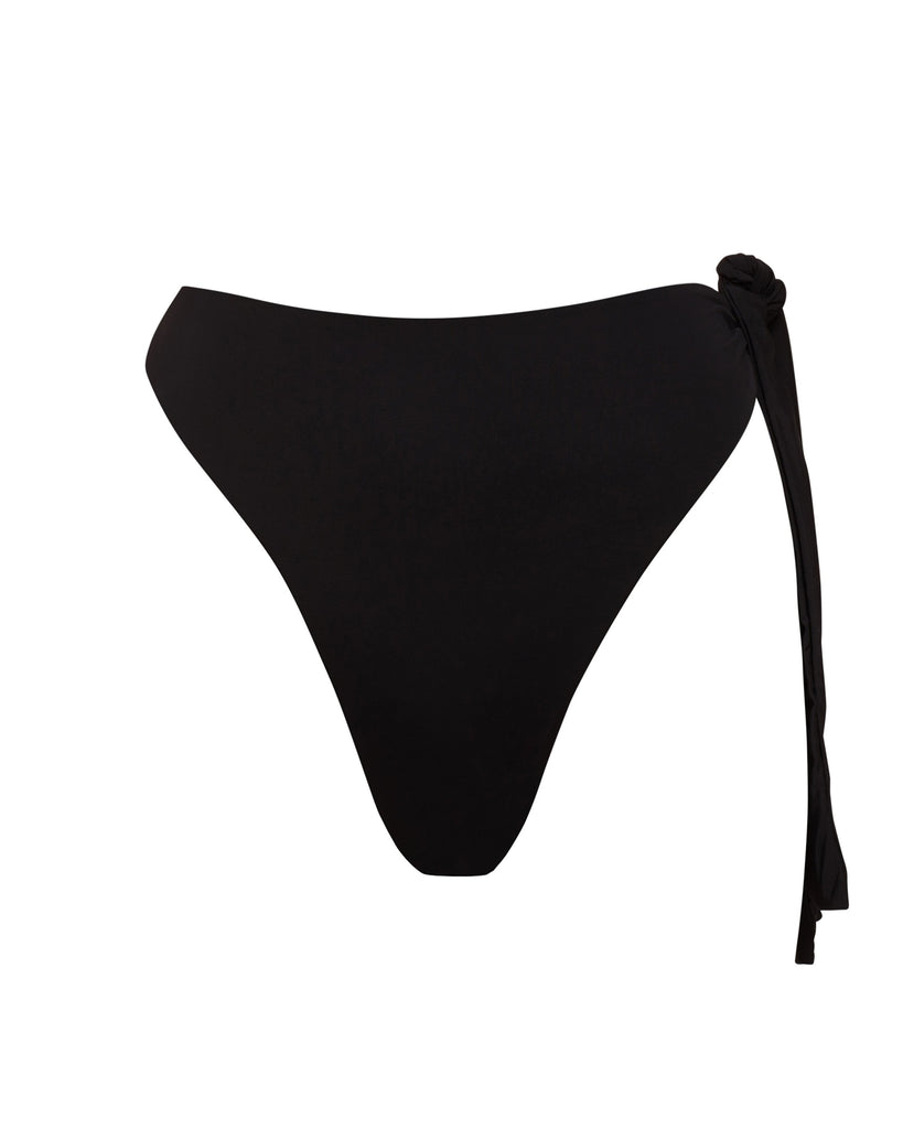 The Finn Tie Side Bikini Bottom features a single tie side, high rise front and thong bottom.