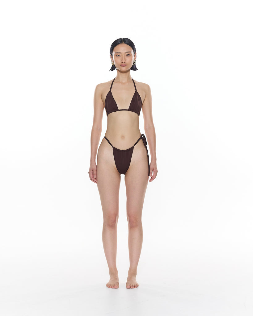The Vera Triangle Bikini Top features adjustable drawstring ties and lined triangle cups.