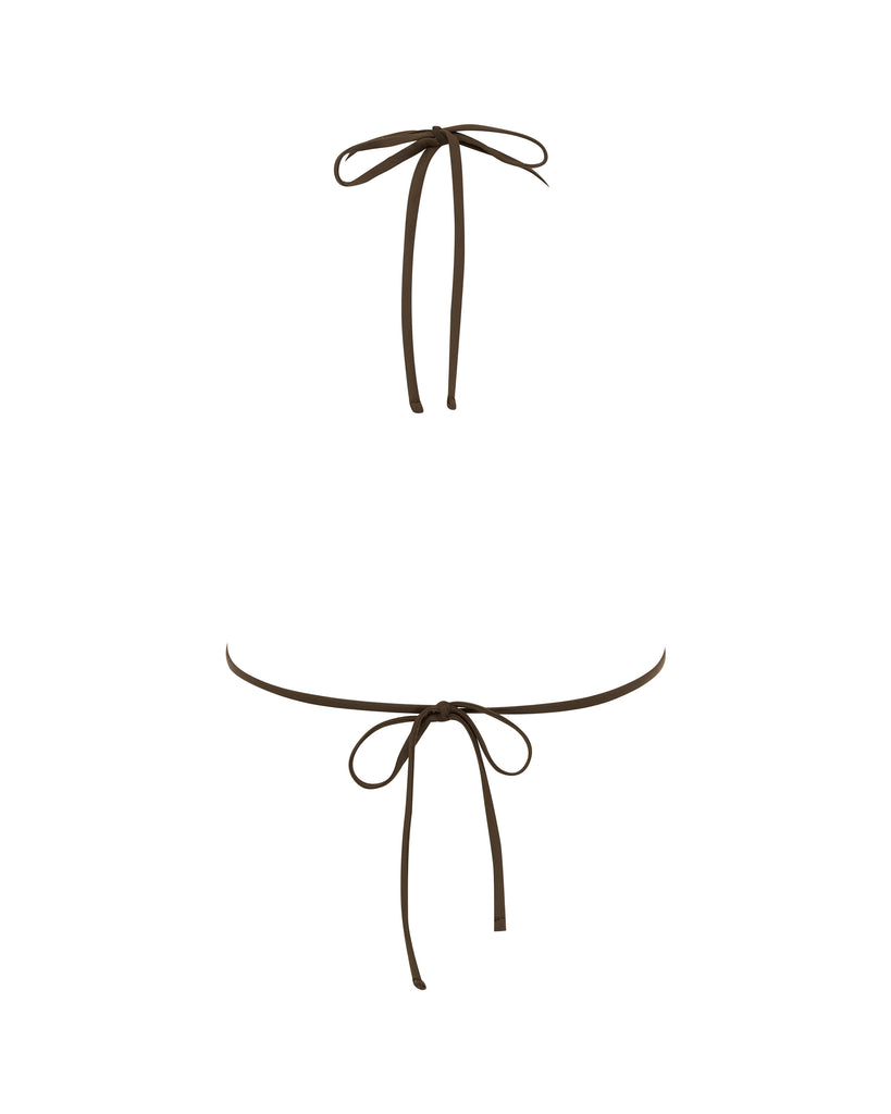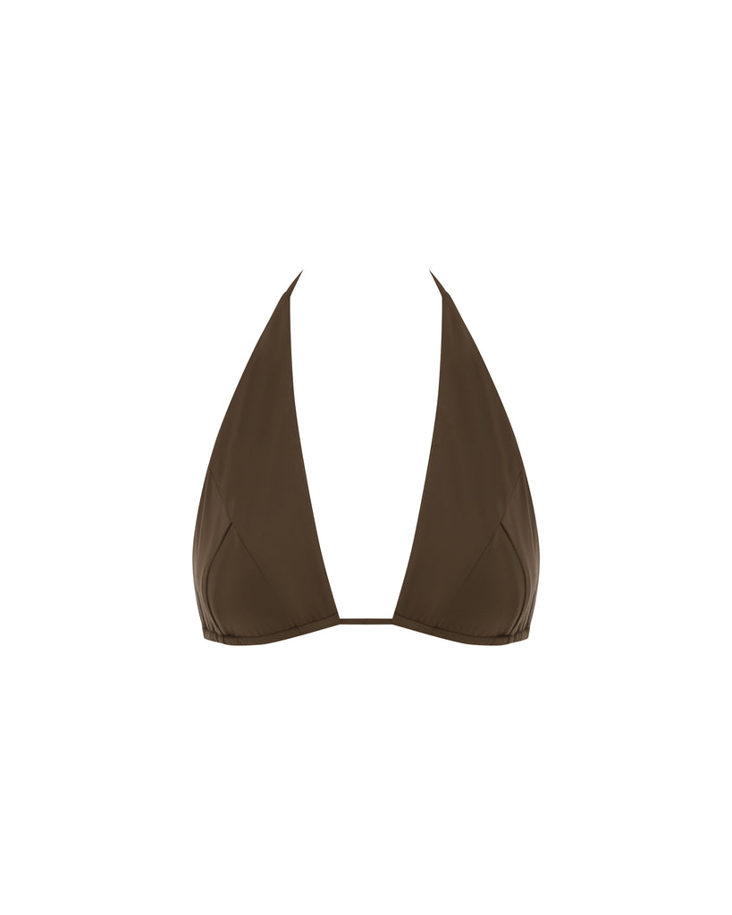 The Cartia Longline Triangle Bikini Top features adjustable drawstring ties and medium coverage triangle cups.