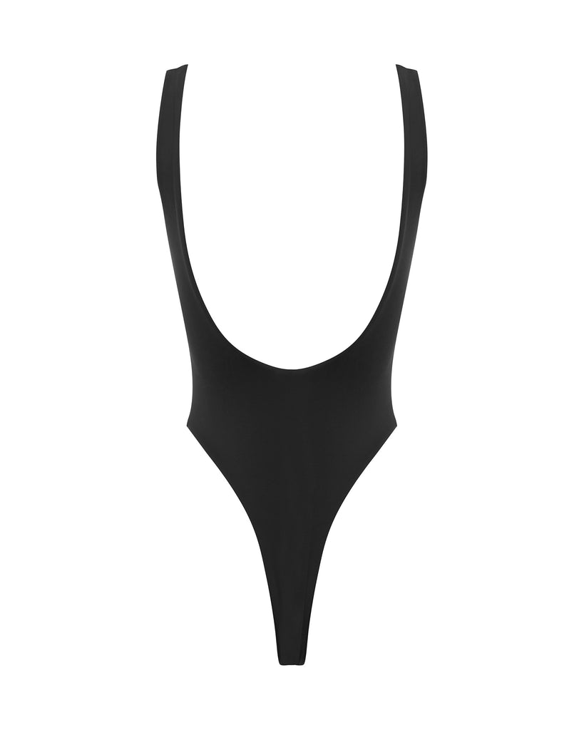 The Nixon Scoop Neck One Piece features a high leg cut, low back and thong coverage bottom.