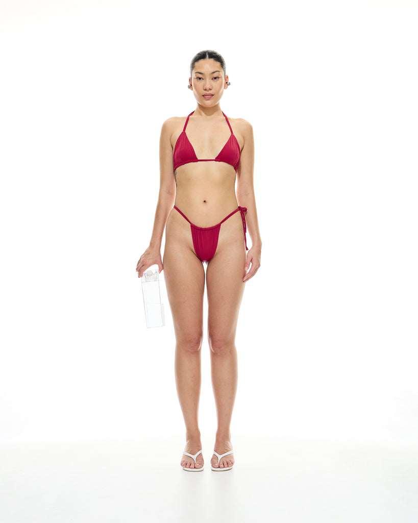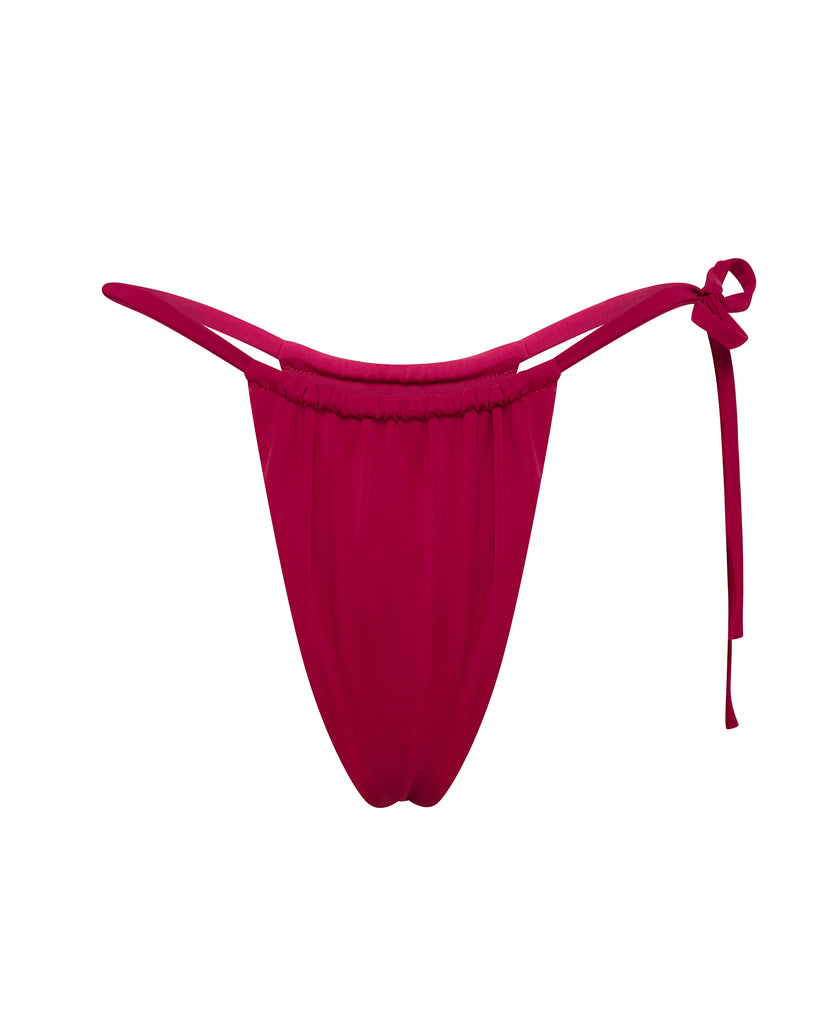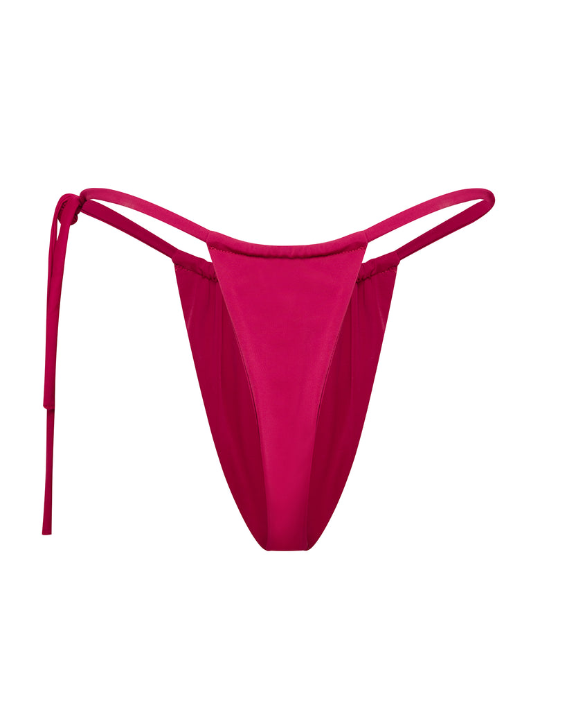 The Kyle Tie Side Bikini Bottom features a single tie side and thong bottom.