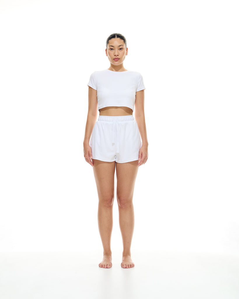 The Valeri Terry Towelling Short features a thick elastic waistband, drawstring detail and dual pockets.