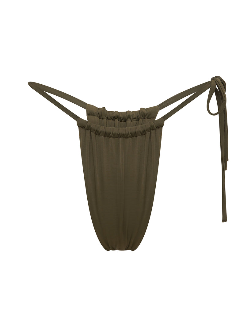 The Kyle Tie Side Bikini Bottom features a single tie side and thong bottom.