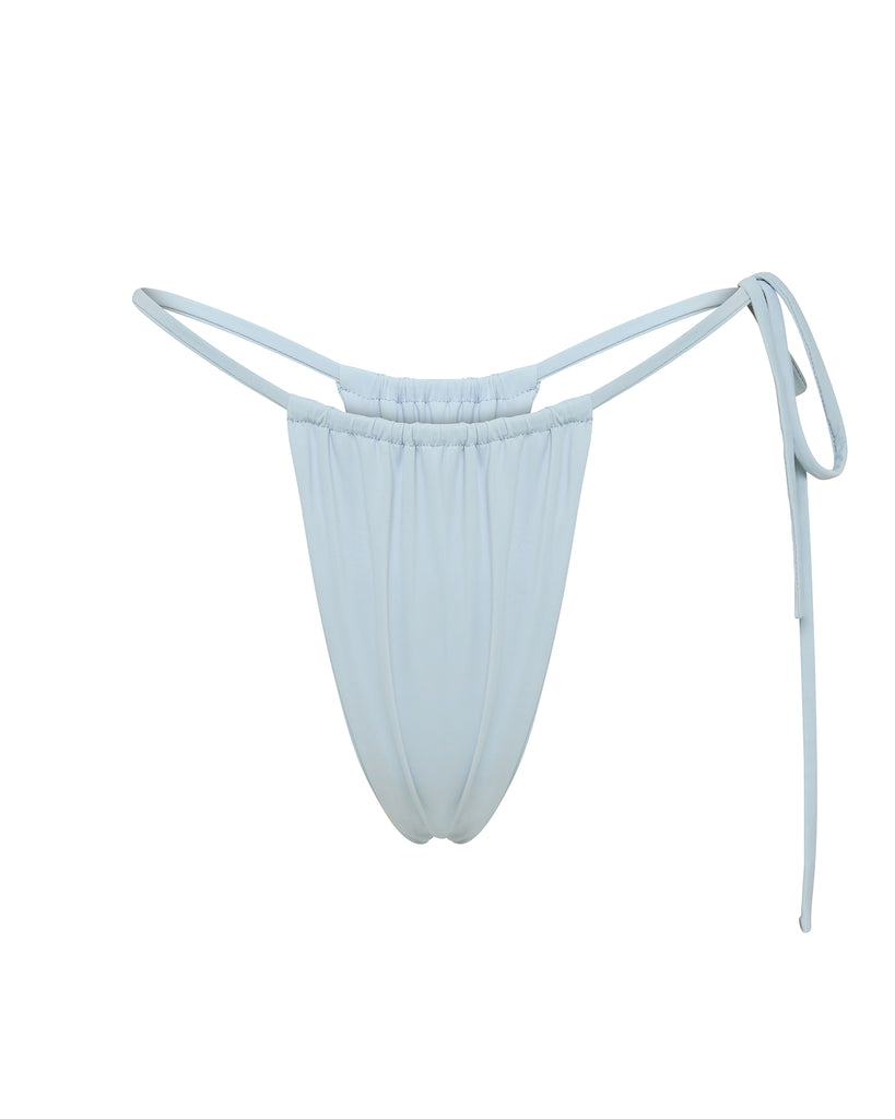 The Kyle Tie Side Bikini Bottom features a single tie side and thong bottom.