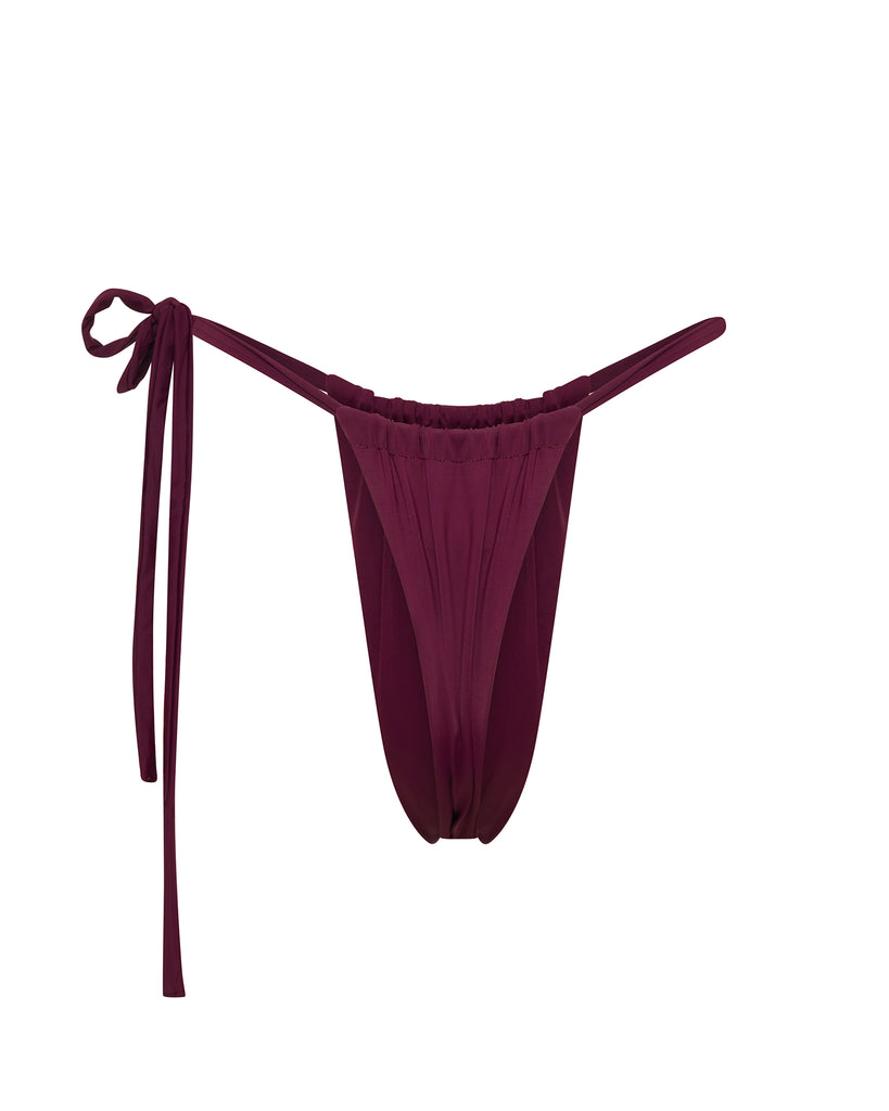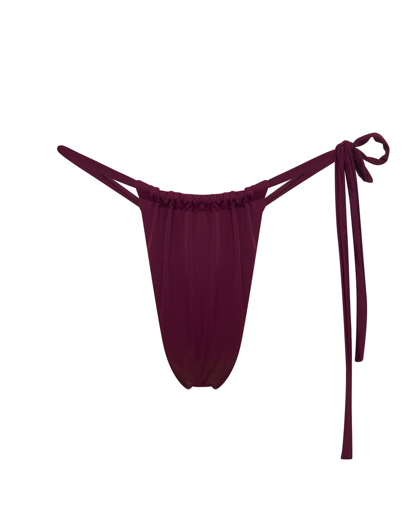 The Kyle Tie Side Bikini Bottom features a single tie side and thong bottom.