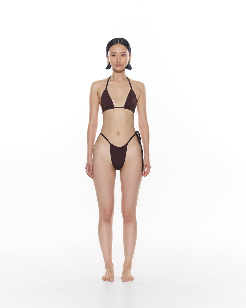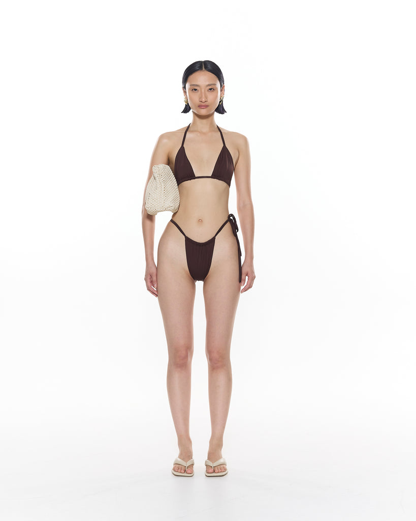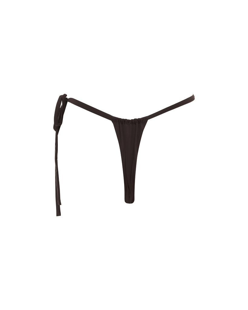 The Kyle Tie Side Bikini Bottom features a single tie side and thong bottom.