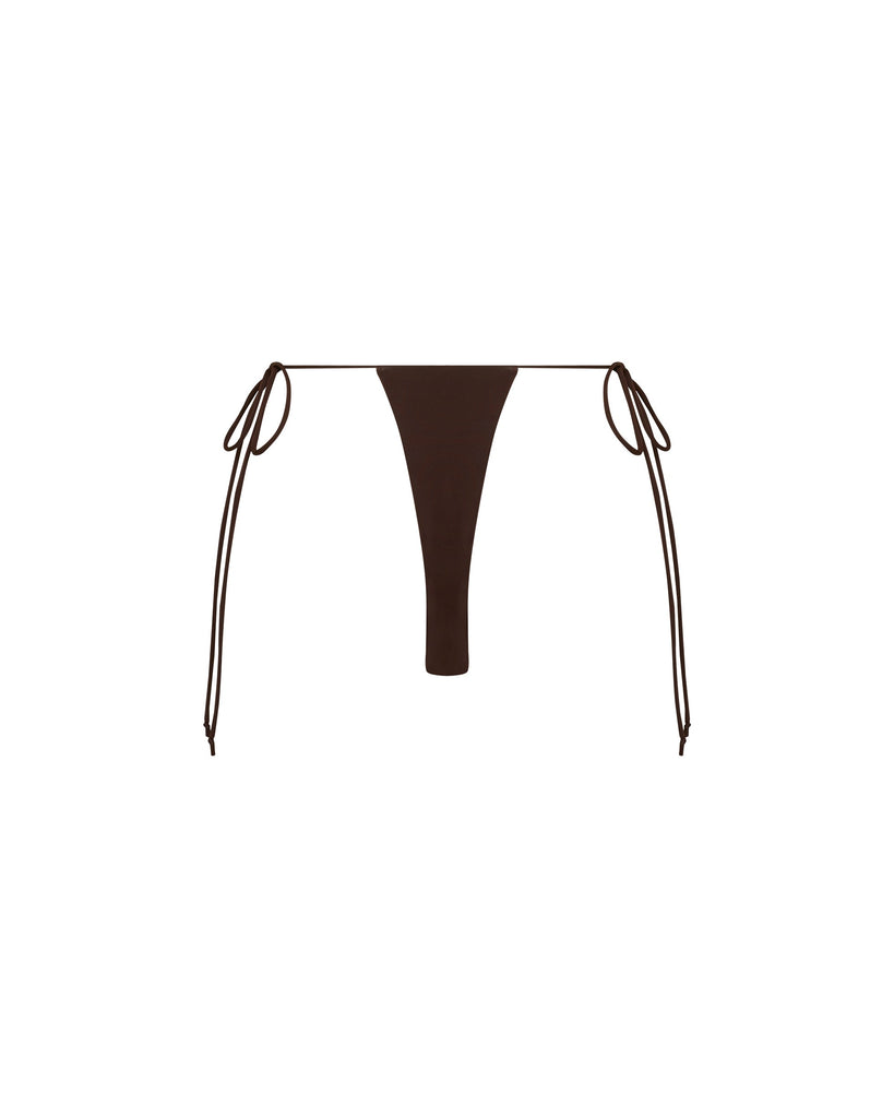 The Nyah Tie Side Bikini Bottom features adjustable string ties and a thong bottom.