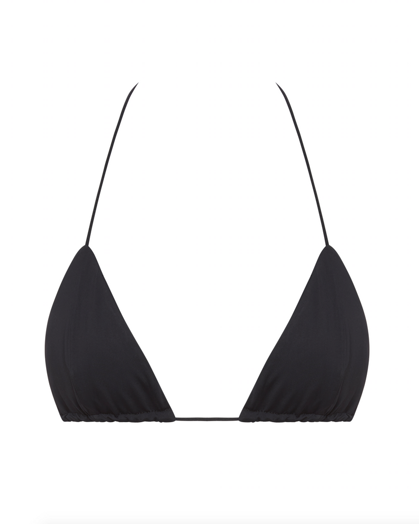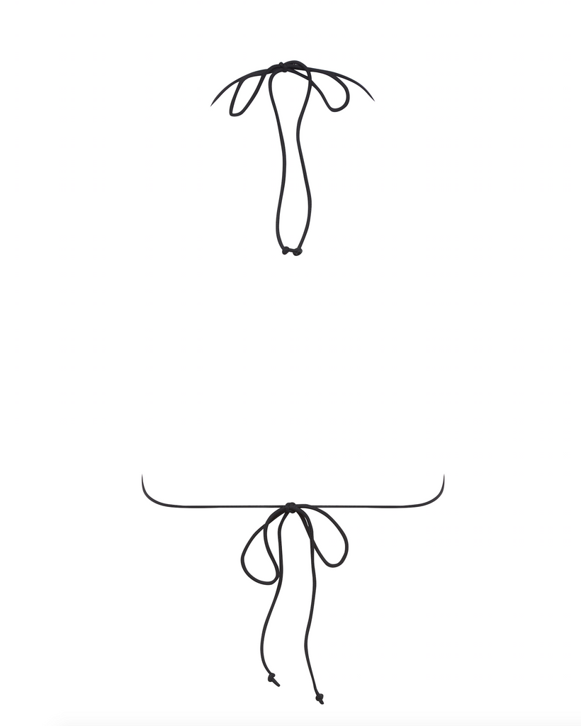 The Sofia Triangle Bikini Top is a minimal coverage style featuring thin drawstring ties and adjustable triangle cups.