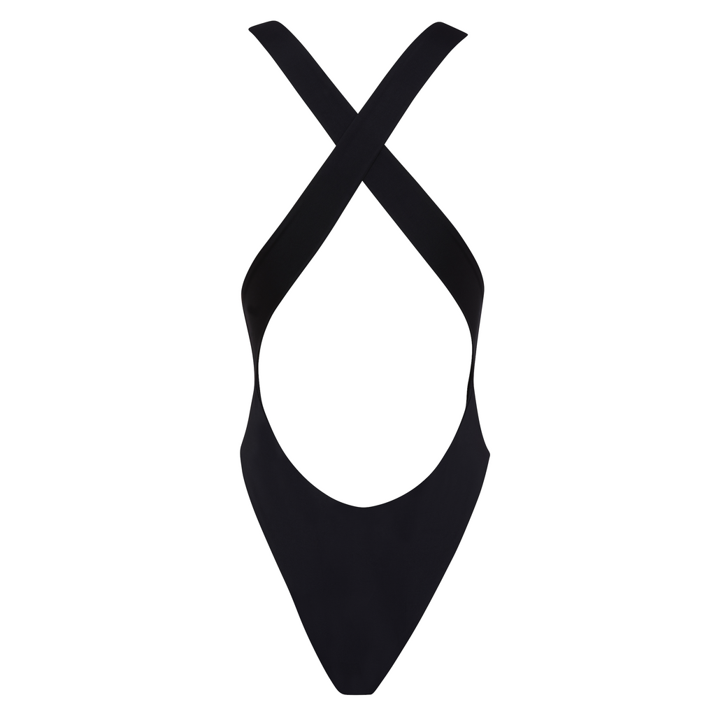 The Hunter One Piece features a deep v neckline, sporty cross back detail and high leg cut.
